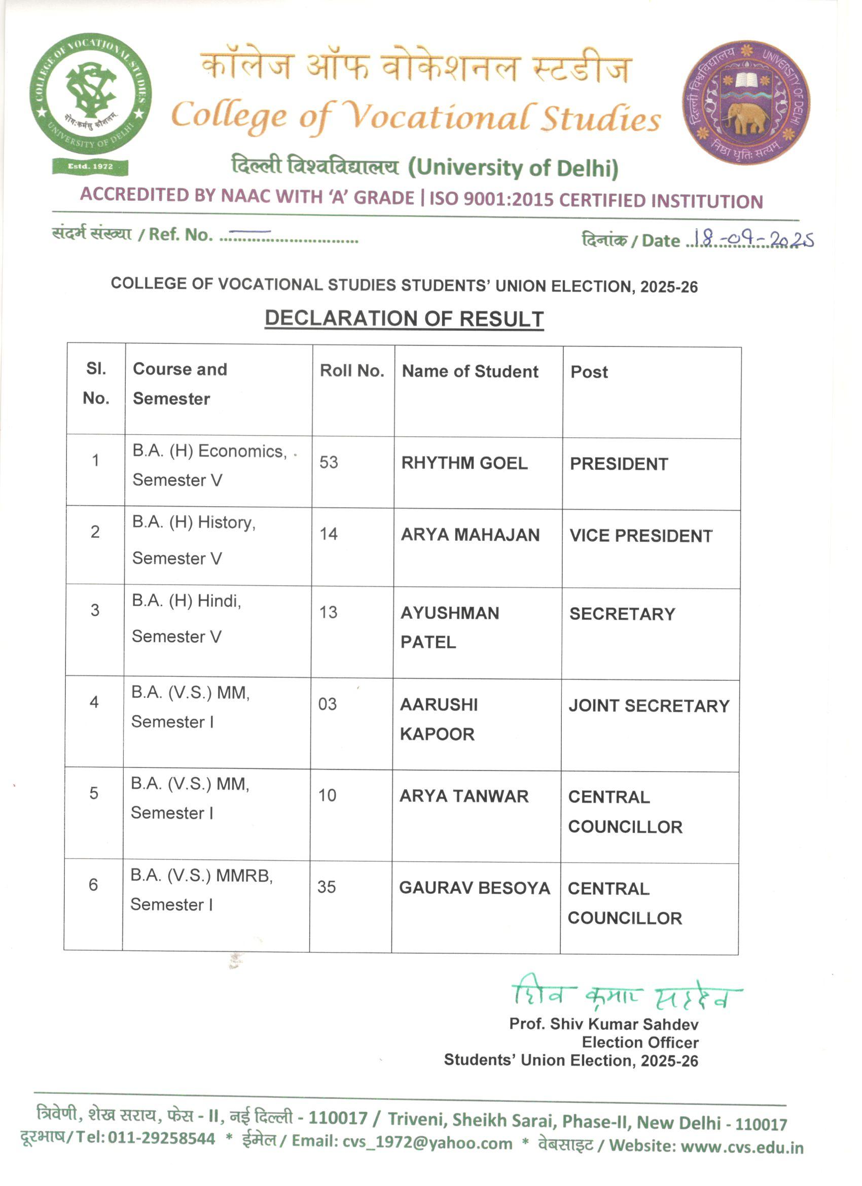 DUSU/STUDENT UNION ELECTION 2025-26 OFFICIALS