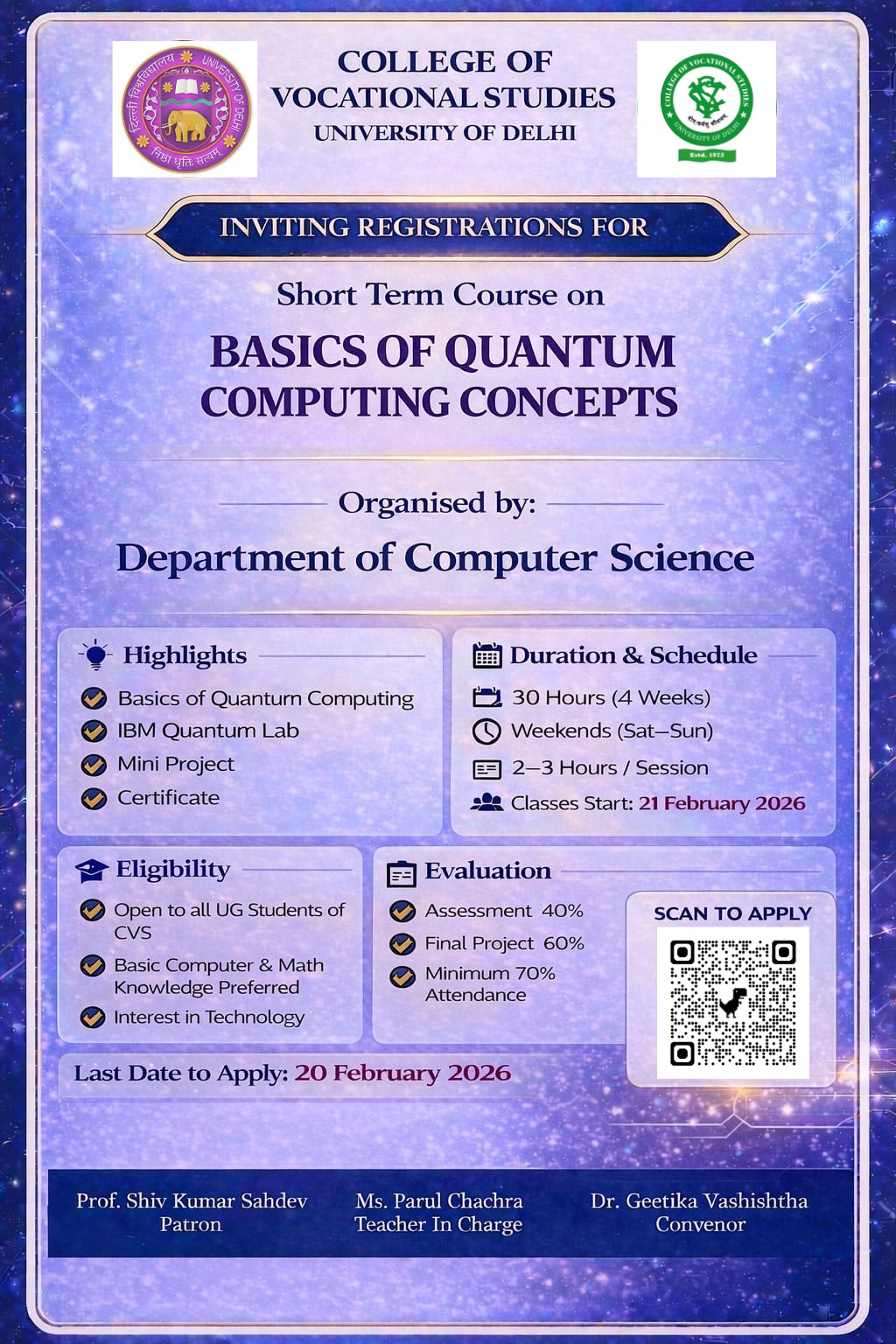 Welcome to CVS, one of the premier institutions in the country and a distinguished constituent college of the University of Delhi.
