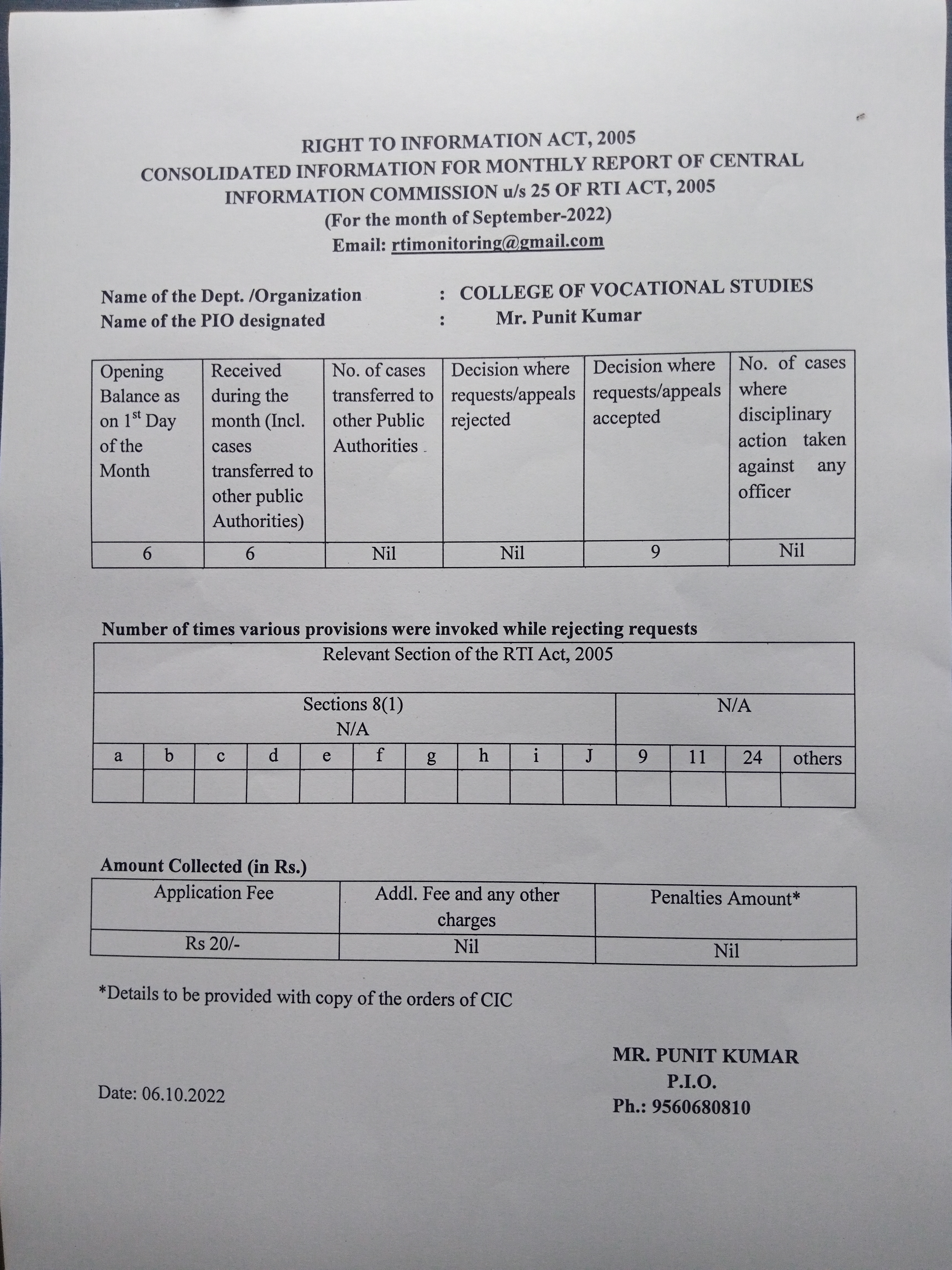 First Appellate Authority NAME - PROF. (DR.) SHIV KUMAR SAHDEV