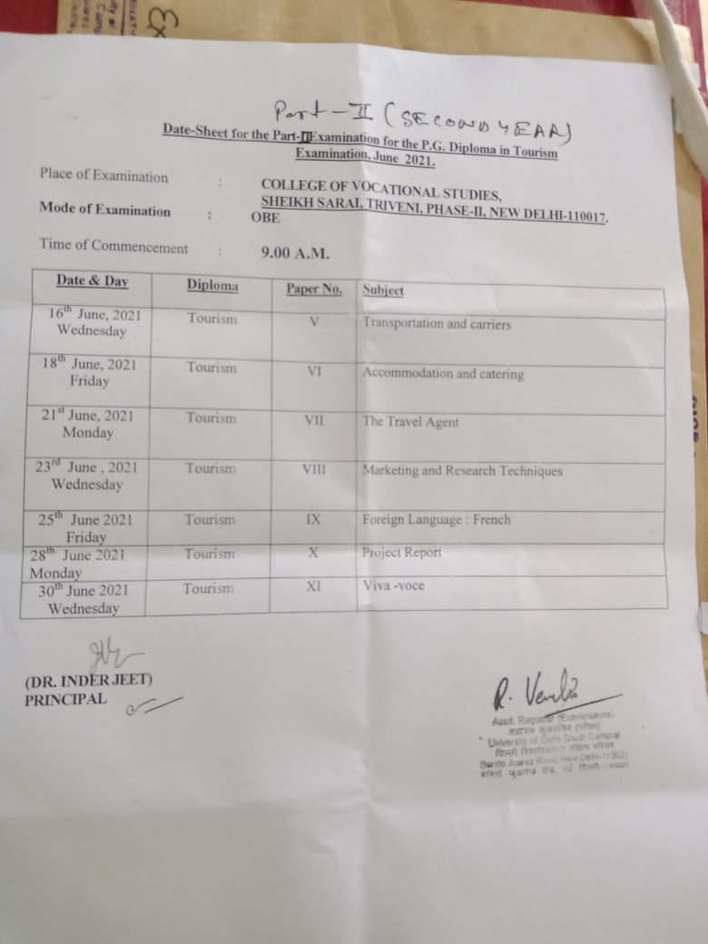 Important Notice For P.G Diploma Tourism First Year Students to Submit their Fee 2020-21