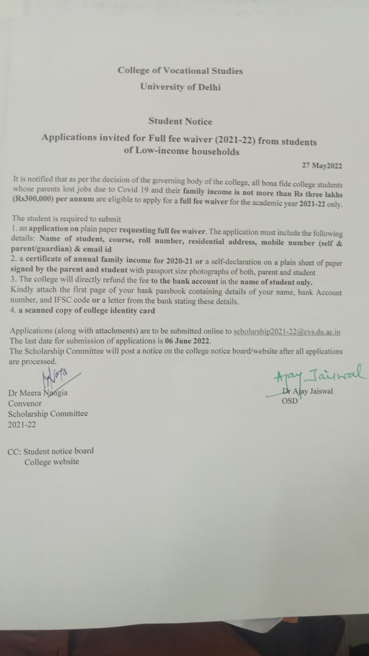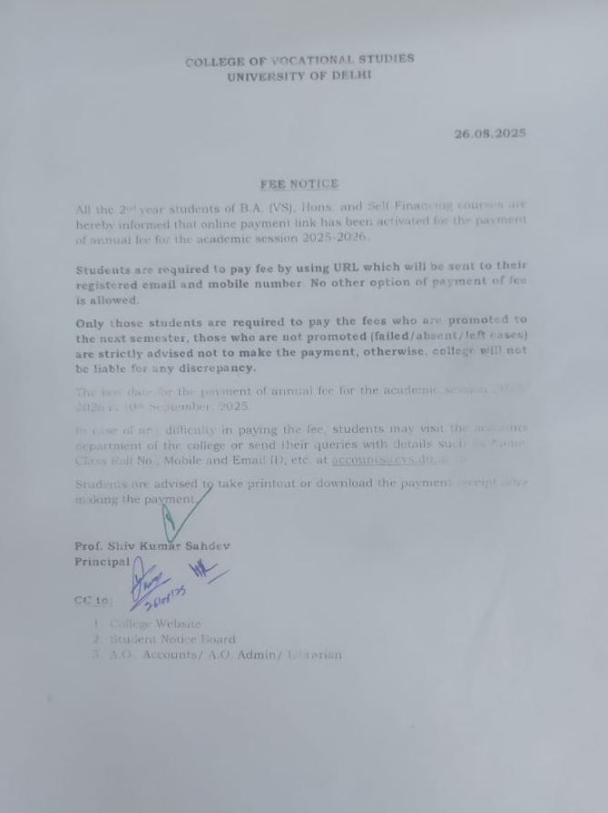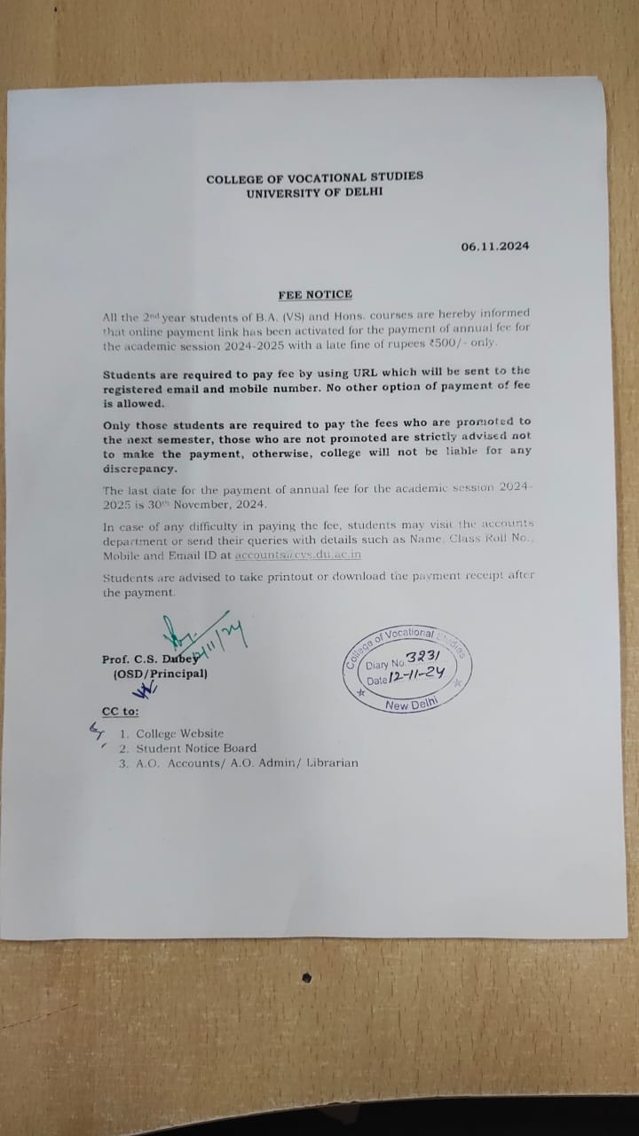 Important Notice For Students Regarding Fee Related Queries