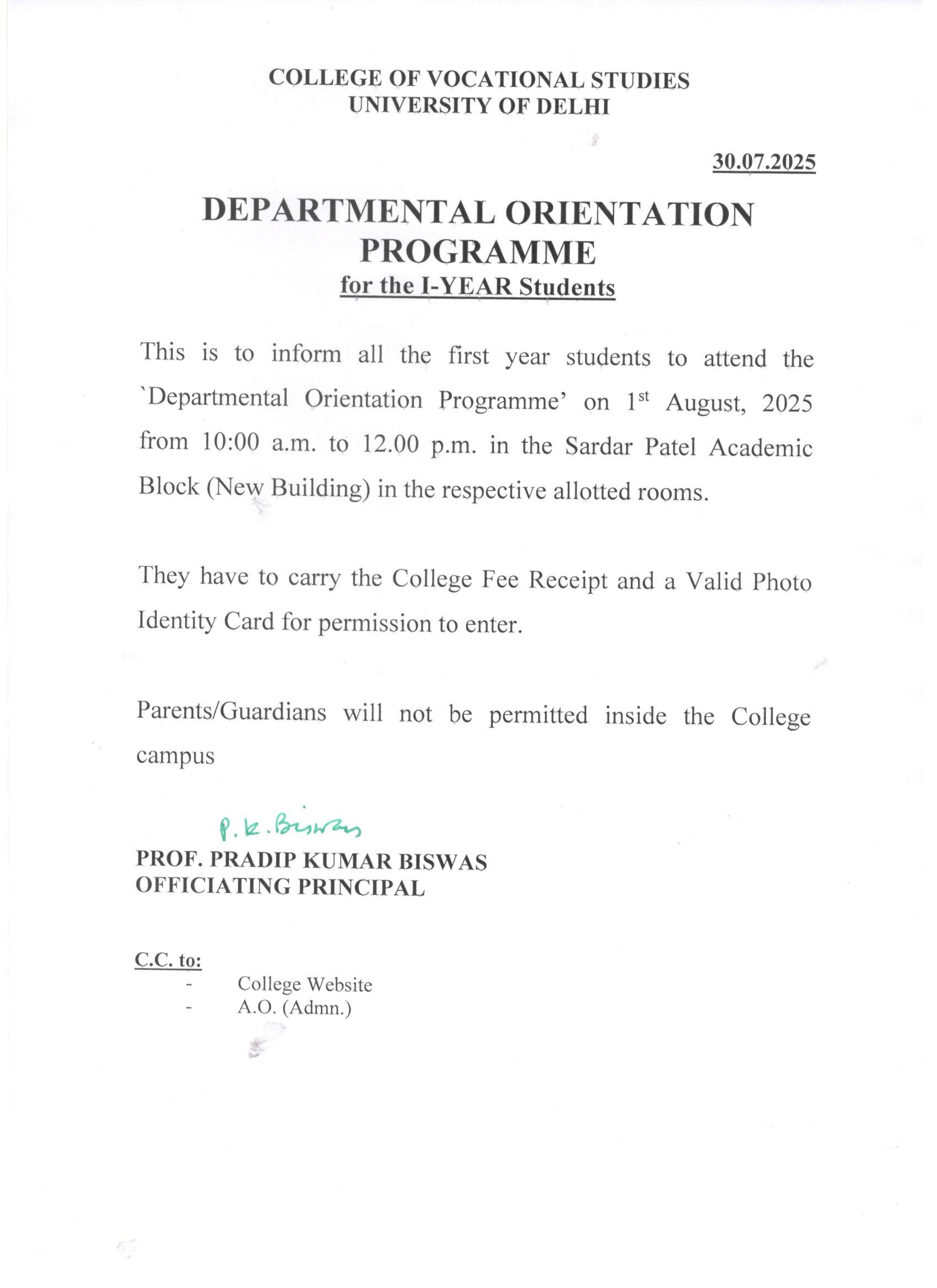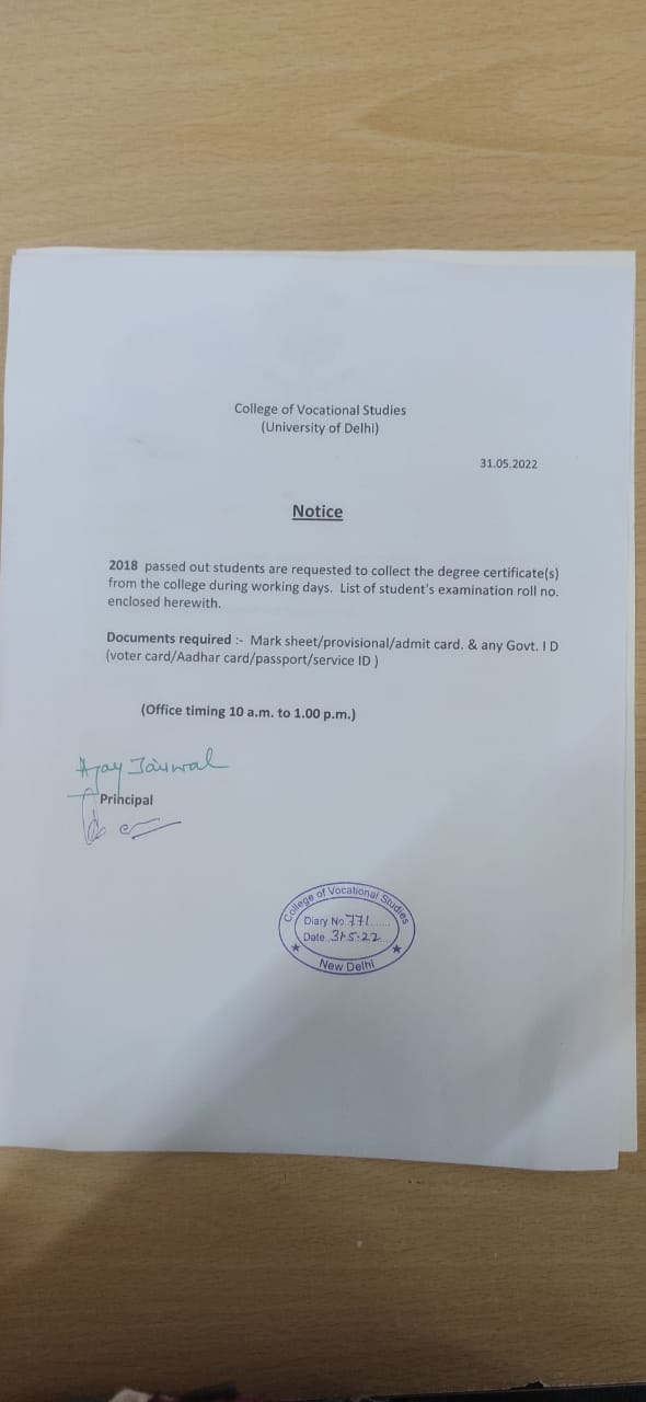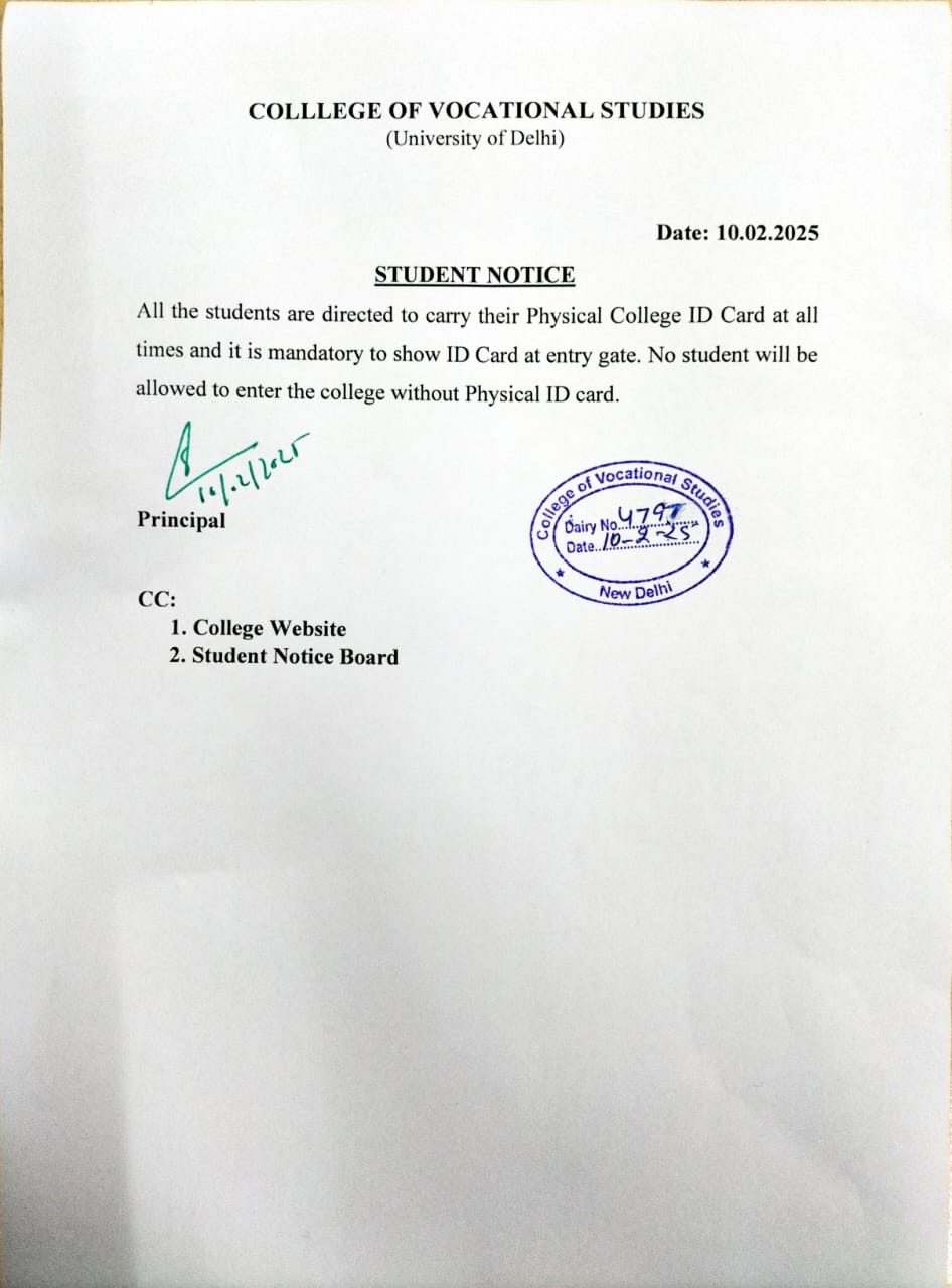 Notice Regarding GE/DSE options for Semester VIII (VOCATIONAL COURSES) Students.