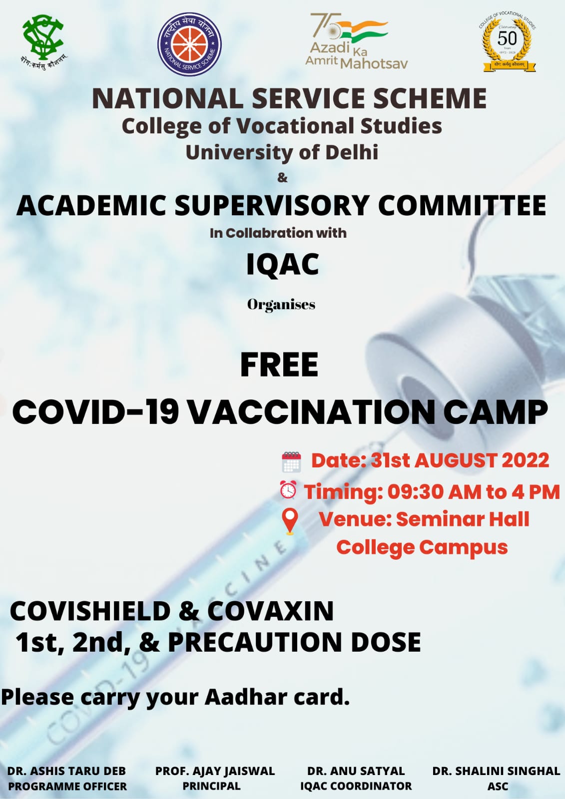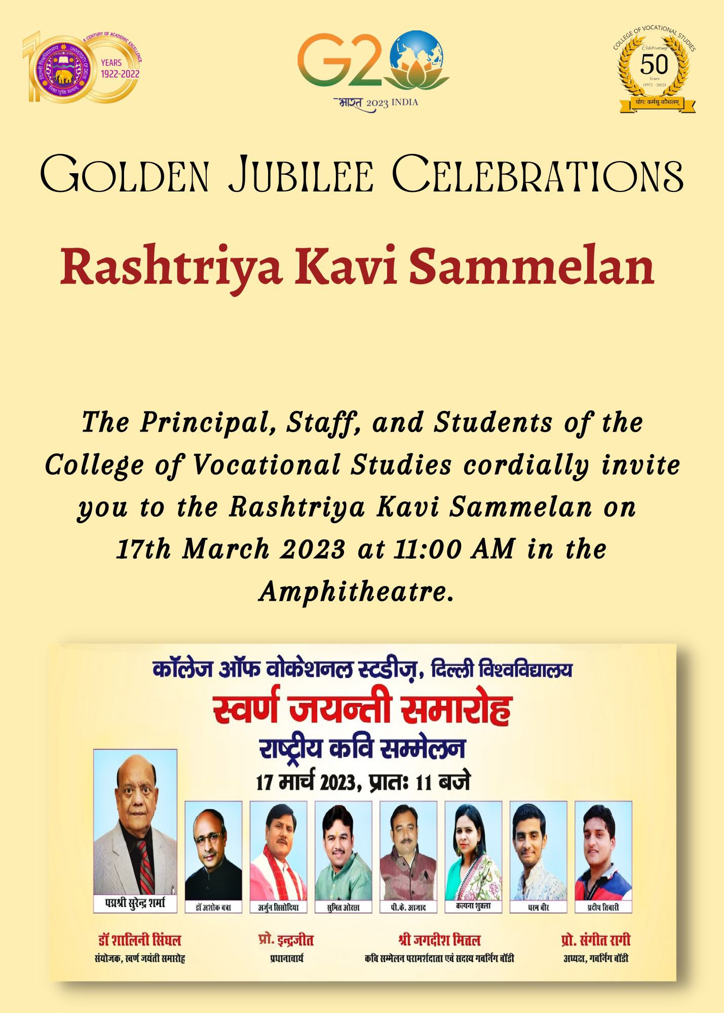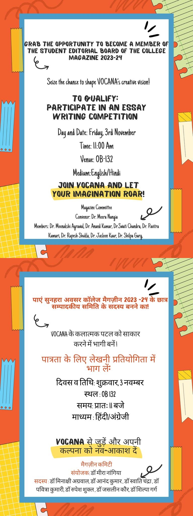 Notice regarding the "Freshers Welcome" organized by the Department of Hindi, College of Vocational Studies, 15th Feb.2021, 4pm on Google meet.