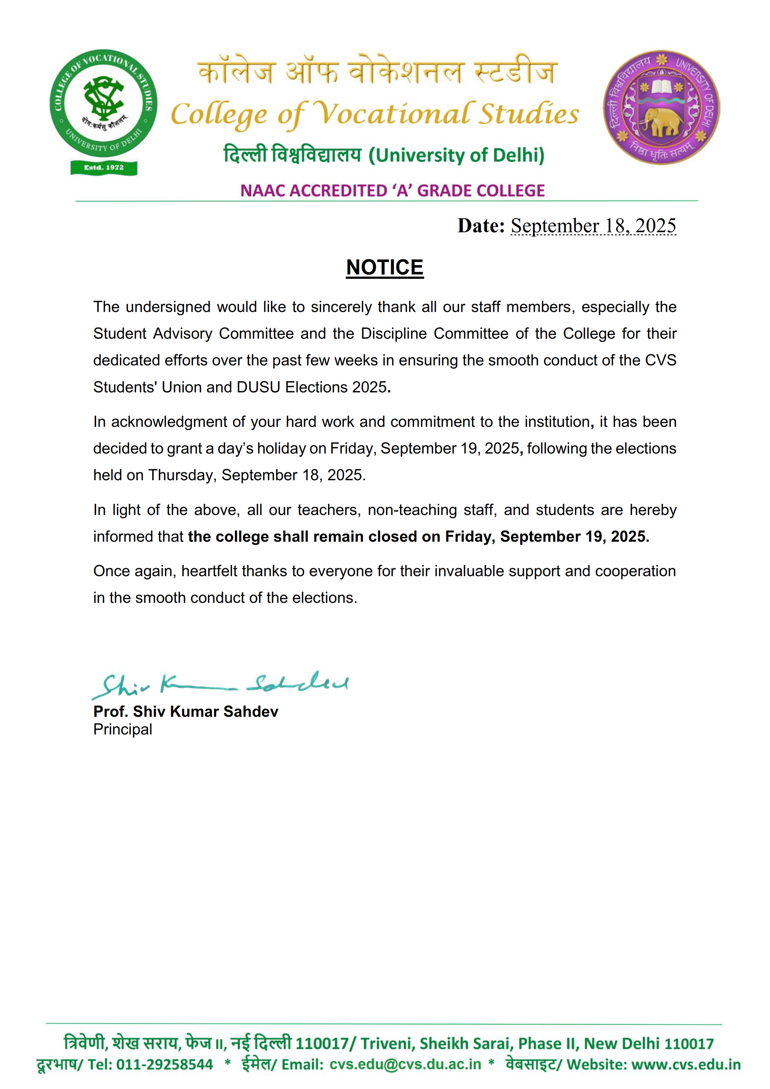 Important Notice For Students Dated 29.04.2021
